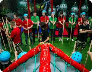 Попадая на площадку через специальный портал, вы становитесь главными героями фильма. На пути Вас будут ждать множество испытаний на силу, ловкость, сообразительность и командообразование.